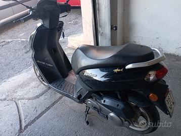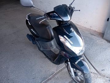 Peugeot 50 4 tempi, Km circa 14000, appena tagliandato. Carrozzeria in condizioni accettabili, con usura e sella con un piccolo foro da cicca. Comunque Funzionante e marciante. Accensione a pedalina ed anche elettrica. Colore nero metal