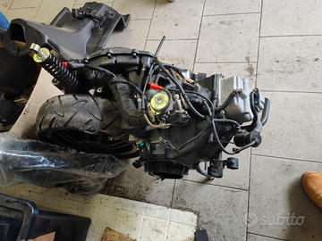 Un motore intero e parti della carrozzeria , sella , specchietti , spoiler , frontale , tachimetro e quadro comandi , centralina, ruote.