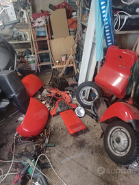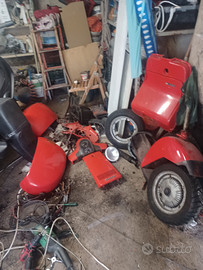 ,forcella completa di tamburo:90€,due scocche compreso freccie 100€,cassettinoanteriore portaoggetti 90€,sella 80€,manubrio completo e contachilometri 130€,portaruota di scorta70€,calandra piaggio 60€, due ruote nuove si scorta complete 100€posteriore con porta targa completo 80€, parafango 50€,due freccie anteriori 40€,faro 50€,tappetino pedane 20€,serbatoiobenzina40€,serbatoio olio30€,pompa freni completa vaschetta 90 €,scannetto15€.