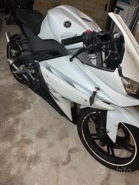 Vendo yamaha completamente smontata a causa di un incidente, la moto prima di essere smontata si mostrava come in figura. Possiedo tutto originale tranne alcune carene e i forcelloni perchè rotti/e. Motore perfetto, gomme nuove e batteria nuova. il prezzo impostato e per prendere tutti i pezzi che possiedo(se interessati a tutto mando foto in privato)