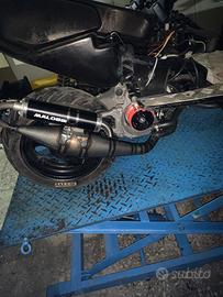 Alimentazione monta pacco lamellare vl14 collettore polini 360 gradi pwk polini 26 con filtro ramair e copri carter malossi , marmitta malossi curva alta team 2 , accensione mvt , riguardo il raffreddamento ha 2 radiatori gp1 derivazione kx250 tubi nuovi e pompa maggiorata stage 6 , i carter sono stati completamente sabbiati e sostituiti tutti i cuscinetti , dal punto di vista elettrico tutto funzionante tranne fecce anteriori per mancanza di porta lampadina già dal vecchio proprietario ,monta termometro koso per monitorare costantemente la temperatura del liquido refrigerante il voltaggio della batteria e l orario e faretti angel con interruttore apposito per l accensione di abbaglianti e anabbaglianti ,impianto frenante revisionato completamente pompa davanti nuova e ganasce posteriori polini i lavori sono sempre stati eseguiti da meccanici professionisti di fiducia e non da persone qualsiasi che improvvisano ,prezzo leggermente trattabile no perditempo no affaristi