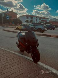 lo scooter monta 70 malossi marmitta giannelli revers raffreddamento liquido,doppio freno a disco,carburatore 17.5,ammortizzatore con la cassa filtro lavorata gomme nuove davanti e dietro