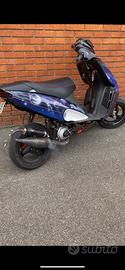 Sono state eseguite le seguenti eleborazioni: -Dr evolution 70 cc -Albero athena racing (montato 6 mesi fa, insieme ho fatto pure il cambio pistone) -Cambiati tutti i cuscinetti di banco e paraoli -Carburatore 17.5 dell orto + filtro a cono polini -Pompa dell acqua maggiorata stage 6 -Marmitta top nardo 2 (silenziatore cambiato a gennaio) -Dissipatore aggiunto nei tubi dell acqua -Rubinetto serbatoio -Ha il miscelatore automatico Trasmissione: -Variatore polini (cambiato a gennaio) -Frizione malossi -Campana malossi -Cinghia appena cambiata Ciclistica: -Forcelle revisionate a ottobre con cambio olio e i paraoli, parapolvere -Ammortizzatore posteriore YSS da 290mm Scadenza revisione 01/01/2027 Il motorino è sempre stato trattato maniacalmente, ad ogni accensione il motorino viene scaldato prima dell uso Unico problema non regge il minimo però basta una carburata ed è apposto