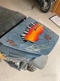 Incidentato, rimasto in un fienile dal 98 con tutto quello che si vede in foto nulla di piu. -Cerchio anteriore crepato e posteriore grigio perfetto (in foto si vede il nero montato per spostamento). -cartucce forfelle recuperabili cambiando stelo (queste erano regolabili) - ammortizzatore posteriore malbo by carbone integro -le carene aerografate in foto sono solo appoggiate e sono integre…solo quella del manubrio ha una mini crepa. -carena retro scudo con una crepa -sotto pedana nero integro ma non in foto -blocco motore completo ma senza marmitta -doppie chiavi disponibili con codice per rifacimento -libretto presente Vendo intero