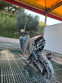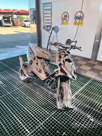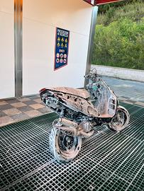 VENDO PHANTOM F12 A LIQUIDO 1 SERIE. Lo scooter presenta: -cilindro 50 DR lavorato (sono stati rivisti e lavorati i travasi), cilindro seminuovo con all’attivo circa 2000 km. -marmitta top line adatta anche per elaborazioni 70 base -carburatore 17,5 phbg (aria automatica) -multivar 2000 - frizione fly malossi -red sponge -pompa dell’acqua top performance (appena cambiata) e dissipatore di calore aggiuntivo. -sella fatta rifare completamente in pelle. -ammortizzatore posteriore yss con rialzo della one. -naked t4 tune con contachilometri ( i km indicati sul contachilometri indicano i chilometri fatti da quando ho montato il naked, ma il motore ne ha, come scritto sopra, circa 2000) e con faretto led come in foto (ho un ulteriore faretto nuovo, che nel caso do in dotazione) . -portatarga pieghevole della one. -frecce posteriori a goccia a led. -gomme PIRELLI ANGEL (in ottimo stato) Allo scooter, inoltre, sono appena state rifatte le forcelle da un sospensionista, dunque revisionate completamente da cima a fondo. La pompa dell’acqua come già indicato in precedenza, è appena stata cambiata ed è stato rivisto e ripulito tutto quanto, radiatori e tubi compresi. Inoltre è stato tolto anche il miscelatore. Il motorino è perfettamente funzionante, targato, pronto su strada, ed è sempre stato tenuto in garage. IN DOTAZIONE CON LO SCOOTER FORNISCO: -tutti i pezzi originali -parafango anteriore verniciato nero lucido dal carrozziere -contachilometri originale ( con indicatore benzina, temperatura dell’acqua, e indicatore olio) -manubrio originale -gemma faro posteriore trasparente della one -portatarga e frecce originali -miscelatore PREZZO LEGGERMENTE TRATTABILE. NO AFFARISTI, NO PERDITEMPO, NO SCAMBI.