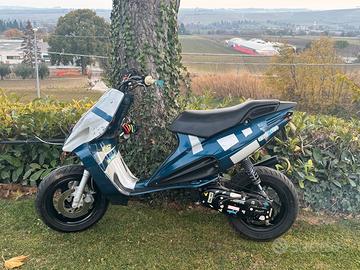 Vendo phantom f12 ancora in rodaggio. L scooter è come nuovo, monta gruppo termico malossi 70 monofascia in alluminio, nuovo con soli 35km dall'accensione, Alberp rhq spalle piene, cuscinetti appositi, monta carburatore da 21, pacco lamellare dedicato, filtro a cono, ventola maggiorata, convogliatore, marmitta Polini omologata con libretto con strozzature levate. Rivernciato da rosso a blu e con qualche Grigio topo. Monta un portatarga tm. Frecce da moto. Ho un manubrio naked nuovo da montare.