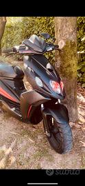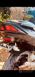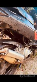 lo scooter é tenuto in buonissime condizioni, la carrozzeria nera con dettagli rossi riverniciati e sportelli fatti con wrap effetto fibra di carbonio.