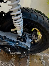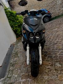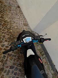 Phantom F12R blocco motore appena rifatto ancora in rodaggio (50cc), monta multivar 2000, cinghia malossi, strumentazione stage6 (non segna la benzina e i giri motore, per quello serve cablaggio), manubrio naked, rialzo ammortizzatore (regolabile), carburatore 17.5 dell'orto (aria automatica), filtro aria malossi red sponge, marmitta giannelli go, manopole pro taper, frecce, portatarga regolabile, cavalletto laterale (non ha il cavalletto centrale).