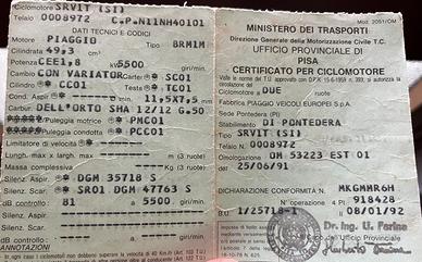 Vendo piaggio Si anno 1991 (con libretto originale). Il motociclo, si accende regolarmente