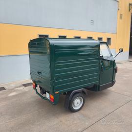 Questa Ape 50, in queste condizioni e con cassone chiuso, è una vera rarità sul mercato.