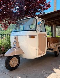 Ape 550 MP restaurato brilla per la sua carrozzeria lucidata nei colori d’epoca, i dettagli cromati rigenerati. Il motore è stato completamente revisionato per garantire affidabilità, mentre il cassone in legno e gli interni essenziali sono tornati allo splendore originale, rendendolo un pezzo da collezione iconico e funzionale.