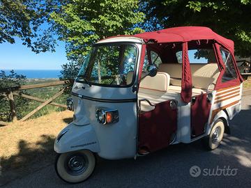 Vendo Piaggio Ape Calessino, anno 2011, uniproprietario, perfettamente integro, manutenuto e funzionante. Impeccabile, km 15000, non necessita di alcuna spesa di ripristino. Ottimo investimento per attività turistico commerciale, NCC, Taxi ed hotel. Richiesta di euro 13000 POCO TRATTABILI. Voltura a carico del compratore. Disponibile da subito. Per favore no ad affaristi, sognatori e perdi tempo.