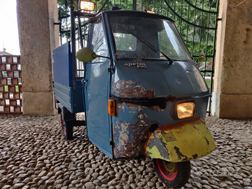L'APE in oggetto inizia a circolare nel 1990. È immatricolata per un singolo conducente. La capacità di carico è di 400kg. Il motore, sostituito dal precedente proprietario nel 2021, è 90cc (non posseggo il motore originale). Oltre al motore, prima del mio acquisto, sono stati sostituiti gli ammortizzatori posteriori. Dal mio acquisto nel 2022 ho fatto eseguire la sostituzione della frizione, la sostituzione dello statore assieme al volano, la sostituzione delle ganasce di entrambi i freni posteriori (assieme a tutti gli elementi assemblanti usurati).