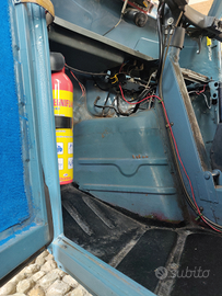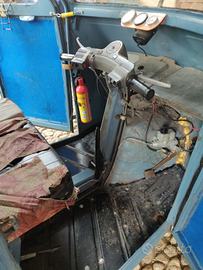 A seguito di un rovinoso impatto con una mura di sasso la carrozzeria, nella parte anteriore (includente frontale e porta), risulta fortemente danneggiata. Anche il cassone, ai lati, è stato danneggiato.
