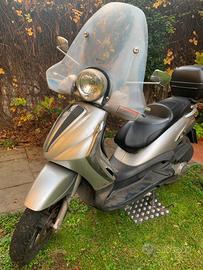 Vendo Beverly 250 Tourer per passaggio a modello più recente. Scooter datato e usato, in buone condizioni considerando l'età, presenta i normali segni di usura dovuti all'uso e al tempo, come sportelli e pulsanti da rivedere, contachilometri non funzionante. Partenza difficoltosa con piogge intense. Motorizzazione buona. Sella sostituita nel 2024. No perditempo, visto e piaciuto. Revisione fatta ottobre 2024.