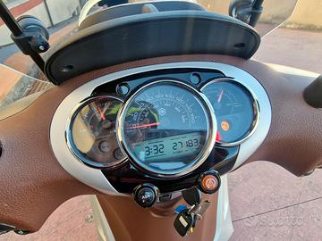 Accessori/note: Bauletto grande originale PIAGGIO, parabrezza fumé, Faro con doppia lampada LED (abbagliante e anabbagliante), led luce sottosella e targa, telecomando elettronico originale PIAGGIO apertura sella e "trova scooter".