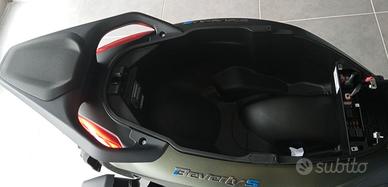 Alesaggio/Corsa75 mm/70,1 mmPotenza max20,4 kW (27,7 CV) 7.500 rpmCoppia max29,5 Nm 6.000 rpmDistribuzioneMonoalbero a camme in testa (SOHC) a 4 valvole con punteria a rulliRaffreddamentoA liquidoAlimentazioneIniezione elettronicaAccensioneElettronica a scarica induttiva ed anticipo variabile integrata nella centralina di iniezione. Sistema closed loop mediante doppia sonda Lambda allo scarico. Immobilizer elettronico, blocco pompa di iniezione con veicolo inclinato. Traction control (ASR)LubrificazioneA carter umidoAvviamentoElettricoCambioVariatore automatico di velocità CVT con asservitore di coppiaFrizioneCentrifuga automatica a seccoTelaioStruttura monoculla in tubi acciaio con rinforzi in lamiera stampataSospensione anterioreForcella telescopica idraulica, corsa assiale 100 mmSospensione posterioreDoppio ammortizzatore idraulico a doppio effetto, regolabile nel precarico molla su 5 posizioni, corsa assiale 94 mmSistema frenanteABS a due canaliFreno anterioreA disco Ø 300 mm, con pinza a doppio pistoncino flottante 2x Ø 25,4 mmFreno posterioreA disco 240 mm, con pinza a doppio pistoncino flottante 2x 22 mmPneumatico anterioreTubeless 110/70-16"Pneumatico posterioreTubeless 140/70-14"Lunghezza2.125 mmLarghezza800 mmPasso1.540 mmPeso o.d.m.185 kgCapacità serbatoio carburante12 litri (di cui 2 litri di riserva)
