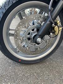 Sospensione posteriore: Doppio ammortizzatore idraulico Showa a doppio effetto e molla elicoidale con precarico regolabile su 5 posizioni