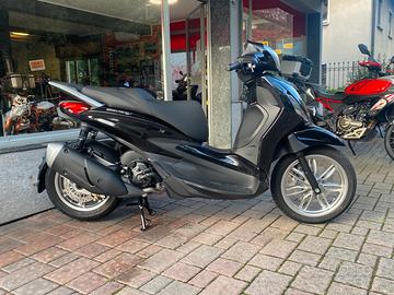 Lo scooter premiumPiaggio Beverly è pura eleganza in movimento. Le linee armoniose si intrecciano a finiture dalle gradazioni metalliche che incorniciano particolari come faro, strumentazione e carter trasmissione. A completare l'estetica ricercata contribuisce la sella, in doppio materiale nero con cuciture a contrasto, che garantisce massimo comfort. Le ruote di grande diametro si integrano perfettamente nel design slanciato, mentre lo scudo, con la feritoia a "V" e la griglia a nido d'ape, riprende la storica "cravatta" Piaggio, conferendo allo scooter una personalità unica e inconfondibile.