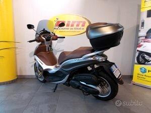 Scooter tenuto molto bene dal proprietario che ha eseguito regolarmente la manutenzione, la carrozzeria presenta pochi segni del tempo ed è accessoriato con bauletto originale in tinta completo di schienale.