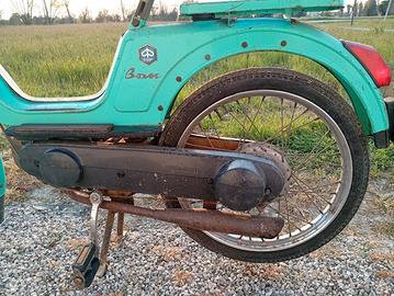 un bel colore conservato verde paraggi personalmente uno dei migliori per questo piaggio boxer 50 modello con variatore con libretto a pagine del 1972 ciclomotore da sistemare un' po' perché fermo da un po' di anni ma motore gira libero motore suo originale posso valutare scambi con vespa o ciao non proponete altri scambi se interessati solo chiamate 327 8662712