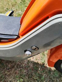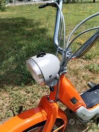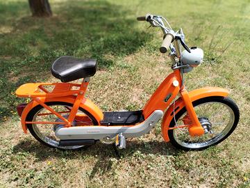 Ciao faro tondo 1968,colore arancio 916, perfettamente restaurato nei minimi partcolari, pedali , sfere grandi, rubinetto a vite , clacson pulsante , cassettino , tappo piccolo,motore rifatto,pronto per collaudo per rilascio targa e libretto nuovi.Librettino originale smarrito, si rilascia documento di lecita provenienza, e relativa denuncia di smarrimento.