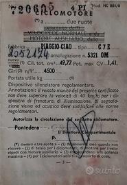 Vendo motorino Piaggio Ciao del 1971 dotato di libretto originale. Non scambio con altri mezzi, per cortesia contattatemi solo se seriamente interessati.