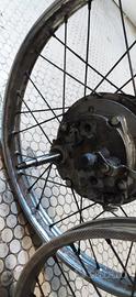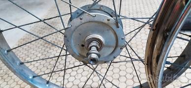 Cerchi 20x17-R in ottime condizione senza ruggine per ciclomotore Ciao Piaggio modello con variatore. La particolarità è il dado con filetto SINISTRO della ruota libera. Spese inclusa