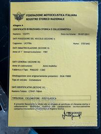 Vendo Ciao Px del 1981 iscritto F.M.I., parabrezza senza ferri e due borse laterali. Il Ciao è fermo da 5 anni sempre tenuto in garage, ha la targa nuova, passaggio a carico dell'acquirente. 600€ trattabili