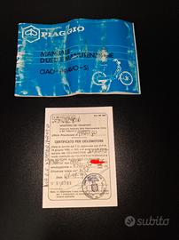 piaggio ciao sc con libretto piccolo tutti originale pneumatici e camera d'aria guaine e bulloneria pedali specchietto pedali scritte km bloccasterzo più pompa per gonfiare pneumatici rubinetto della benzina kit con cassetina per ferri e libretto di istruzioni .