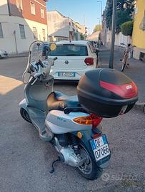 Vendo piaggio Fly 150 quattro tempi euro 3, lo scooter ha 21300km circa, perche lo uso tutti i giorni e piano piano saliranno. Come si vede dalle foto le plastiche sono un po rovinate, ma vista l'età e il fatto che viene tenuto all'esterno ci sta, ma meccanicamente e assolutamente perfetto. Il motore parte sempre al primo colpo anche dopo essere stato fermo tutto l'inverno e non consuma una goccia d'olio, tra un tagliando e l'altro non c'è bisogno nemmeno di fare riabbocchi, la gomma anteriore, posteriore e le pastiglie dei freni sono state appena cambiate(spesa 250€), lo vendo cosi com'è con bauletto e parabrezza che e stato fatto accorciare perche con le luci di sera faceva troppi riflessi e si vedeva davvero poco. ma copre il corpo lo stesso. Il prezzo e di 500€ e visto le spese appena effettuate e praticamente regalato. E uno scooter economico ma che fa egregiamente il suo dovere. Per cortesia contattatemi solo se siete davvero interessati e per venire a vederlo. Lo vendo solo perché le esigenze lavorative mi portano tutti i giorni fuori Milano e prenderò uno scooter con cilindrata maggiore. Primo contatto via mail e poi ci si mette d'accordo al telefono. grazie Maurizio