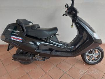 Introvabile HEXAGON GT 250 (4t) con il famoso motore Honda indistruttibile 250 del CN (Spazio). Ancora più introvabile in queste condizioni. Scooter usato dal precedente proprietario solo per scendere in spiaggia d'estate ... stesso uso che ne ho fatto io, infatti, da quando l'ho acquistato io nel maggio 2024 ho percorso solo 400 km. Ampio bauletto integrato, seduta comodissima per il passeggero. Intramontabile!! BATTERIA NUOVA!