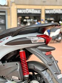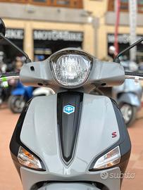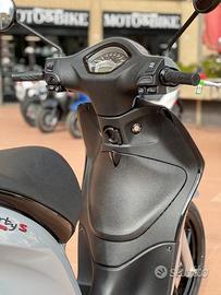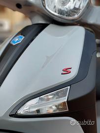 Piaggio Liberty S 125 ABS Ú la versione più sportiva dell'omonimo modello e si distingue per i particolari dedicati quali i cerchi ruota, gli specchietti e altri componenti della carrozzeria, verniciati in nero, anche la sella si distingue per le cuciture rosse.