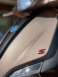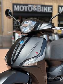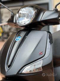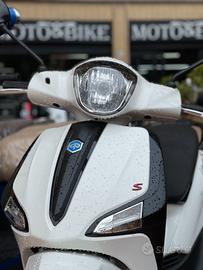 Piaggio Liberty S 50 Ú la versione più sportiva dell'omonimo modello e si distingue per i particolari dedicati quali i cerchi ruota, gli specchietti e altri componenti della carrozzeria, verniciati in nero, anche la sella si distingue per le cuciture rosse.