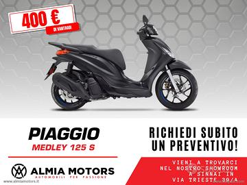 Disponibile anche nella versione Medley 125 S, con un look sportivo e dettagli esclusivi.