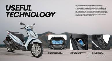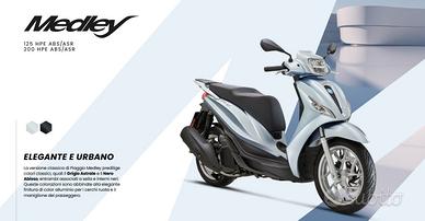 Piaggio Medley 200 dà una spinta in più alle avventure quotidiane: l'innovativo motore monocilindrico 4T Euro 5+, raffreddato a liquido e dotato di iniezione elettronica, offre una guida potente e senza sforzi. Grazie al peso ridotto del telaio, realizzato con la classica struttura monoculla, e ai grandi cerchi ruota in alluminio, Piaggio Medley unisce affidabilità, agilità e consumi contenuti. Disponibile anche nella versione S: vieni a scoprirlo nel nostro showroom, oppure contattaci per più informazioni allo oppure al (anche via Whatsapp).