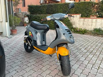Scooter Piaggio NRG prima serie anno 1996 raffreddato a liquido. Restaurato completamente dal telaio alle plastiche. Monta: - elaborazione 70 malossi - carburatore 17.5 - pacco lamellare in carbonio - variatore multivar malossi - frizione malossi - cinghia malossi - spugna rossa malossi - espansione Arrow - rialzo ammortizzatore Blocco 50 + marmitta originale Documenti ok, revisione scaduta Passaggio di proprietà a carico dell’acquirente