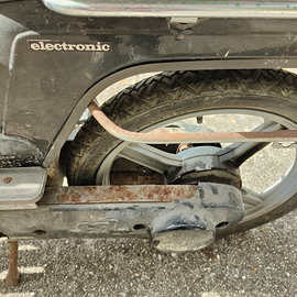 Ciao ragazzi liberando il garage di mia suocera abbiamo trovato questo, era suo ma non l'ha usato per anni. Non si accende ma la candeletta sembra in buono stato, lo sterzo è bloccato e la benzina (che c'è ancora nel serbatoio, dovrei svuotarlo) sembra non andare proprio in circolo. Sono nuovo nell'ambiente, mi sono appassionato più di auto d'epoca che di questi motocicli. Sapete aiutarmi a farne una valutazione? Valutazione sia di denaro che di problemi, dandomi dritte su cosa provare a fare la prossima volta che vado lì. Volevano rottamarlo ma io sinceramente ho preferito aspettare.