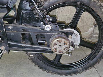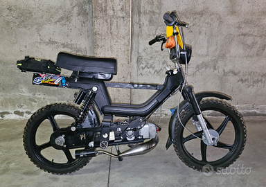 Telaio rinforzato e verniciato a polvere,albero motore Mazzucchelli, campana frizione Malossi,filtro Malossi,slitta PLK,scarico Fire Giannelli, accensione a strappo PWR,cc 75 Polini,molle forcella rinforzate, gas rapido Domino.