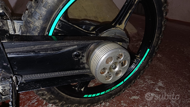 Buongiorno, sono a vendere motorino come in foto,( ho altre foto se interessati del materiale)con denuncia di smarrimento libretto,smontato blocco marmitta e variatore..., il Blocco motore si è fermato e non piu ripartiro( potrebbe essere qulasiasi cosa calda ,candela,grippato, centralina ecc...cmq gira libero ma da rivedere) cosi composto, albero anticipato originale sp 10,carter polini speed engine elettronico, volano alleggerito pinasco,gruppo termico pinasco evoten 75 alluminio con testa a 5 serraggi collettore 22....carburatore.13.13 e aspirazione 13. fornisco anche collettore da 16 e carburatore 16.16...in piu ce campana c40 con frizione 3 tipo, marmitta gianelli fire,Mozzo 12.5,correttori da 100,molla gialla malossi,variatore malossi, cinghia malossi, centralina,avviamento a strappo pvr, il telaio è fornito di rialzo posteriore e pedane cross, manubrio bmx,con attacca in cnc,gomme tassellate nuove,tabella porta numero,rapido ecc....fornisco in oltre 2 VOLANI COMPLETI ELETTRONICI, 1 CENTRALINA, 1 GOMMA NUOVA,1 CERCHIO POSTERIORE,1 SLITTA,1 SITO PLUS,2 FILTRI A CONO UNO PER 13.13..E ALTRO FILTRO CONO PER 16.16....TESTA SCOPPIO CENTRAL POLINI, GRUPPO TERMICHE DR 43 USATO MA COMPLETO, 2 ALBERI MOTORE ,vendo preferibilmente tutto in blocco SE INTERESSATI contattatemi Denis
