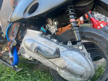 monta un 172 malossi in condizioni perfette, albero rinforzato, biella ricavata dal pieno carter e cilindro lavorati e lucidati pacco lamellare Vl16 malossi con lamelle appena messe nuove, basetta e collettore polini carburatore 26 pvk monta un variatore malossi, cinghia nuova (tutto il resto é originale e in perfette condizioni) pompa dell’aqua appena messa nuova. monta una pompa radiale anteriore l’impianto di raffreddamento comprende 2 radiatori una sulla carena davanti e uno sulla sopra la pedana (appena fatto) revisionato fino al 2027 per qualsiasi cosa o ulteriori foto o video contatarmi al numero 3923031565 (vendo per cambio moto)