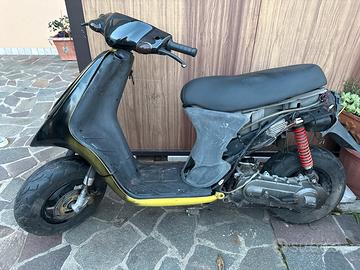 vendo piaggio typhoon del 1993, lo vendo così com'è, senza marmitta, sella nuova, forcelle non scoppiate, ammortizzatore posteriore non scoppiato, con libretto originale quindi non necessita il passaggio, chiavi originali, prezzo trattabile