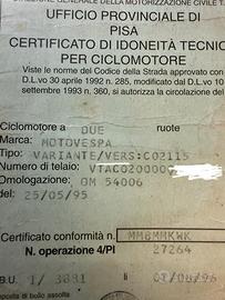 Piaggio Velofax 50 del 1996 perfettamente conservato con soli 450 km, praticamente rimasto fermo posteggiato in garage; fatto tutti i controlli con sostituzione filtro aria, tubo carburante, lavaggio carburatore, serbatoio e sostituzione vecchio olio del miscelatore, naturalmente fornito con batteria nuova. Ha dopoie chiavi, libretto uso e nanutenzione, ha ancora il vecchio libretto piccolo e quindi da fare la nuova targa. Perfettanente funzionante.