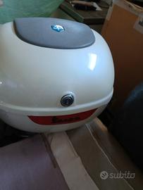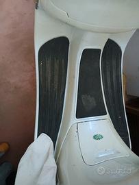 La vespa è un bellissimo color bianco perla, dotata di parabrezza specchietti e bauletto in tinta