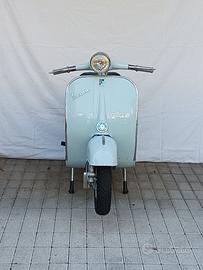 Completamente ristrutturata con sabbiatura e vernice originale. Sono a disposizione tutte le fatture del materiale acquistato. Vespa perfetta iscritta al registro FMI TARGA ORO. Sono disponibili fotografie dei vari lavori effettuati durante la ristrutturazione. Il 60 % del materiale et ancora quello originale. Compresa nel prezzo sella lunga e vari accessori di ricambio