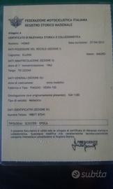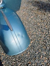 vendo vespa 150 vbb1t del 1962 .restaurata nel 2011 . sempre tenuta in box tutta originale , certificato fmi azzurro metallizzato , completa di ruota di scorta sedile passeggero specchietto e tappetino . revisione valida fino a giugno 2027, funzionante pronta x il passaggio . NB danneggiata sul lato sx , parafango ant e bordo scudo prezzo poco trattabile