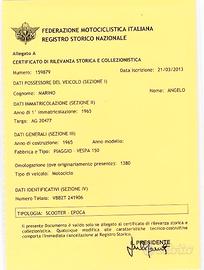Vespa 150 del 1965 e poi immatricolata nel Maggio 2013, restaurata nei minimi particolari vendo per non utilizzo.