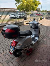 Vespa in ottime condizioni con 250 di cilindrata ad iniezione GTS a presa diretta. Inoltre è munita di porta pacchi anteriore e posteriore, pedane passeggero fisse, porta navigatore, parabrezza basso anteriore, spina a 12V, due gomme nuove, bauletto nero e bollo pagato per questo anno.