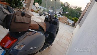 Perfetta, impeccabile, pronta a viaggiare.plendida Vespa GTV 250 i.e. del 2007, colore grigio avio, con sella in vero cuoio.