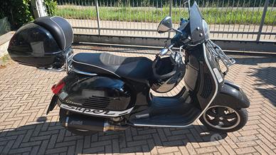 Vendo Vespa Gts 300 con circa 45.000Km, tenuta molto bene e con diversi accessori, tra cui, portapacchi anteriore e posteriore, bauletto in tinta, scarico sportivo Polini, sella sportiva, cupolino basso fumè ec... Dispongo di tutti i pezzi originali. Non vendo separatamente gli accessori. Valuto scambio SOLO con Beverly 500 (solo versione cruiser) o con altri scooter di cilindrata superiore. Non valuto altre proposte. Disponibile per info e prove. Regolarmente revisionata, bollo pagato